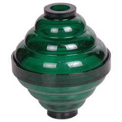 TRANSPARENT GREEN 3 1/2" ornamental ball made of durable styrene. This represents the traditional "ribbed" style lightning rod ornament. Each ball is made up of two halves which fit tightly together. Unlike glass balls, these ornaments are virturally unbreakable.