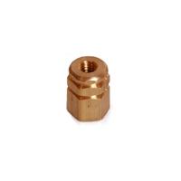 Brass adapter to engage 3/8" solid rod points to stud type bases. 3/8 -16 female threads on top, 5/8 -14 female threads on bottom.