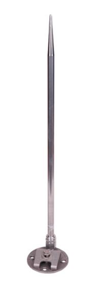 Complete aluminum chimney point assembly for mounting on the top of the chimney cap. Includes a No. A611 base and No. A55 1/2" x 12" solid aluminum point with base adapter. Premium die cast clamp accepts cables through No. A508.