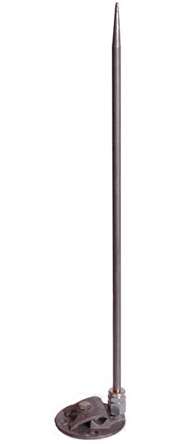 Complete chimney point assembly for mounting on the top of the chimney cap. Includes a plated No. 611T base and lead coated No. 55LLA 1/2" x 12" solid copper point with plated base adapter. Premium die cast bronze clamp accepts cables through No. 506.