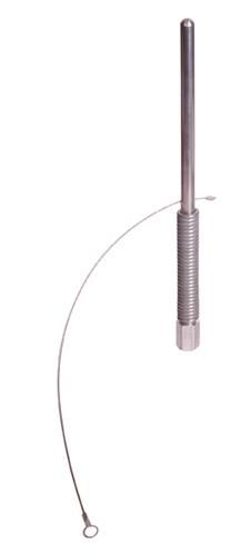 1/2" x 24" aluminum safety spring air terminal for use where window washing or other movable equipment conflicts with fixed air terminals. Adapter fits all external stud type bases. Solid point portion is 1/2" diameter aluminum. Overall height is 24". The heavy stainless steel spring provides a 90° tilt in any direction. Comes complete with a stainless steel safety tie-off cable with lug for attaching to bolt at base.
