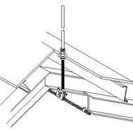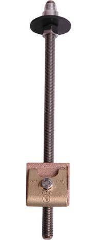 Through roof base for concealed mounting at roof ridge locations. Assembly includes an all thread 1/2" x 12" long stainless steel riser bar, premium die cast bronze cable clamp for conductors through No. 506, lead washer for weather seal above the roof and No. 28M adapter.