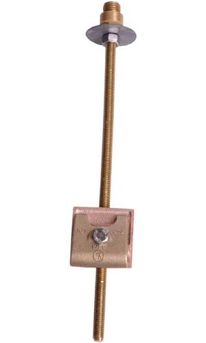 Through roof base for concealed mounting at roof ridge locations. Assembly includes an all thread 3/8" x 12" long riser bar, cast bronze cable clamp for conductors through No. 506, lead washer for weather seal above the roof, hex nut, and flat washer to secure riser below the roof, and No. 28 adapter to accept all adapter type air terminals.