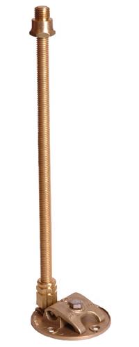 Concealed base and riser assembly for metal or concrete deck construction. Riser bar is 1/2" diameter by 12". Top assembly fits all adapter type air terminals. The premium die cast mounting base has a bolt pressure cable clamp for cables through No. 506.