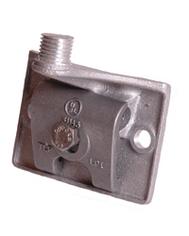 Heavy duty aluminum right angle parapet base with an external stud for all adapter type points. Stud has 5/8 - 14 male threads. This base is designed for mounting near the top of the wall for use with 12"-24" points which will require no further support. The point is held out from the wall to clear a coping overhang of up to 1 1/2". Premium die cast bolt pressure cable clamp accepts cable No. A507.