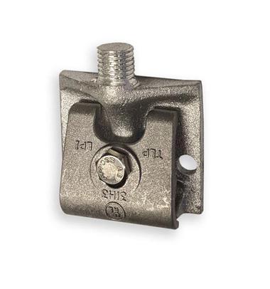 Sand casted aluminum point base for side mounting at parapets or screen walls, etc. The premium die cast clamp is for use with adapter type air terminals and cables through No. A508. Mounting holes are 1/4" clearance. Stud has 5/8 - 14 male threads.