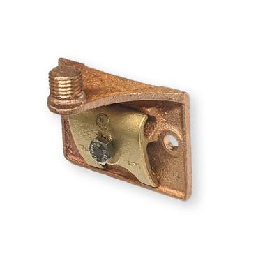 Heavy duty right angle parapet base with an external stud for all adapter type points. The stud has 5/8 - 14 male threads. This base is designed for mounting near the top of the wall for use with 12"-24" points which will require no further support. The point is held out from the wall to clear a coping overhang of up to 1 1/2". Premium die cast bolt pressure cable clamp accepts cables through No. 506.