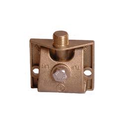 Premium die cast point base for side mounting at parapets or screen walls, etc. The premium die cast clamp is for use with adapter type air terminals and cable No. 507. Mounting holes are 1/4" clearance. Stud has 5/8 - 14 male threads.