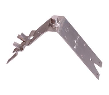 2" wide aluminum saddle with a crimp type cable connector for cables through No. A28. Point stud has 5/8 - 14 threads to accept all adapter type air terminals. Saddle can be field adjusted to all roof pitches.