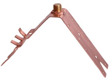 2" wide copper saddle with a crimp type cable connector for cables through No. 506. Point stud has 5/8 - 14 threads to accept all adapter type air terminals. Saddle can be field adjusted to all roof pitches.
