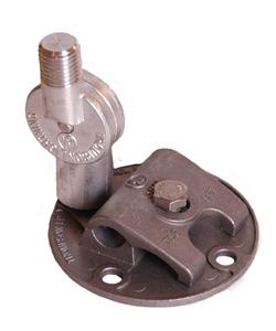 This premium die cast aluminum base includes a swivel adapter so that points may be set perpendicular on a sloping roof. The premium die cast bolt pressure connection accepts cables through No. A508. Mounting holes are 1/4" clearance.