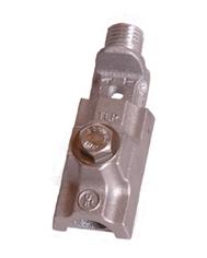 Vertical point base for connection between adapter type points and cable through No. A24. Stud has 5/8 - 14 male threads. Connector has mounting hole for either 1/4" bolts or screws which should be ordered separately. The cable clamp is of premium die cast aluminum construction. For class II cables use part No. A690M