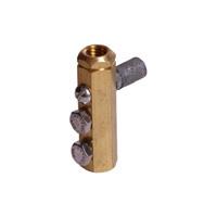 Machined brass connector for 3/8" air terminals. Intended for vertical mounting of 3/8" "less adapter" type air terminals and includes a stainless steel mounting bolt and lead expansion anchor. Base requires additional support on the air terminal to insure adequate support.