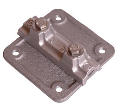 Heavy duty, 4" X 4", aluminum bonding plate for bonding to structural steel. The four bolt holes are for either 1/4" or 5/16" machine screws. The two bolt premium die cast pressure type clamp fits cables A24 & A37. Connection has 4" of contact.