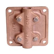 Heavy duty 4" X 4" bronze bonding plate specifically designed for No. 507 and 250 MCM conductors. Ideal for ground connections to building columns.
