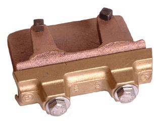 Heavy duty "set screw" clamp type bronze bonding plate with 8 square inches of surface for bonding all cables through No. 506 to structural steel purlins, channel irons, "I" beams, or angle irons. This plate clamps to the steel and requires no drilling. Has a two bolt premium die cast cable clamp with 4" of contact. Fits structural steel up to 1/2" thick.