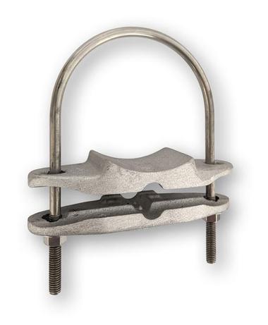 U-bolt type pipe bonding clamp with aluminum cable connection and 5/16" stainless steel U-bolt. Accepts all cables through No. A507 and a maximum pipe O.D. of 4 3/16". Also used to support air terminals on vertical pipe masts or conduit mounted lights, etc.