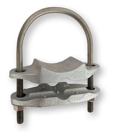 U-bolt type pipe bonding clamp with cast bronze cable connection and 5/16" stainless steel U-bolt. Specially plated for bimetal use. Accepts all cables through No. 507 and a maximum pipe O.D. of 3 3/16". Also used to support air terminals on vertical pipe masts or conduit mounted lights, etc.