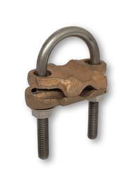 U-bolt type pipe bonding clamp with cast bronze cable connection and 5/16" stainless steel U-bolt. Accepts all cables through No. 507 and a maximum pipe O.D. of 1 7/16". Also used to support air terminals on vertical pipe masts or conduit mounted lights, etc.