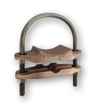 U-bolt type pipe bonding clamp with cast bronze cable connection and 5/16" stainless steel U-bolt. Accepts all cables through No. 507 and a maximum pipe O.D. of 3 3/16". Also used to support air terminals on vertical pipe masts or conduit mounted lights, etc.