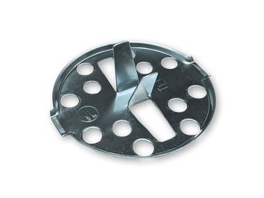Stamped cable holder secured with adhesive on flat roofs. The rolled edge and break-away tabs are designed to protect roof surfaces. Specially plated for bimetal use. Accepts all cables through No. 507.