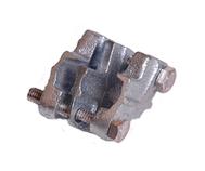 This clamp is our premier multipurpose bolt pressure clamp, specially plated for bimetallic use. Uses include connecting main size cables from 29X through 506 to solid rods (air terminals, risers, or ground rods) through 3/4" diameter.