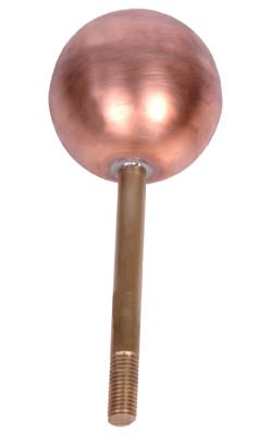 4" diameter copper corona ball with 5/8" brass shaft, 10" overall height 3/4" of 5/8-11 thread.