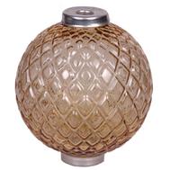 This ornamental glass ball is hand blown glass from the original Thompson mold (circa 1916). These 5" diameter diamond quilt pattern ornaments are the finest available and are identical in all respects to the original. Comes complete with end caps to fit 5/8" diameter solid or tubular points.