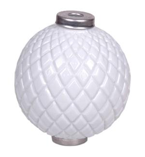 This ornamental glass ball is hand blown glass from the original Thompson mold (circa 1916). These 5" diameter diamond quilt pattern ornaments are the finest available and are identical in all respects to the original. Comes complete with end caps to fit 5/8" diameter solid or tubular points.