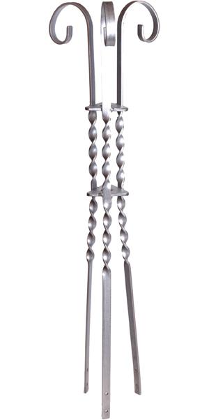 An antique style 3 leg highly ornamental and authentic galvanized scroll brace for 5/8" solid or tubular points. Brace is 36" long for support of points up to 60" tall. The ultimate for decorative or restoration projects.